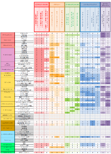 ・ DSS-Pでは、上記のスキル項目における重要度の基準を4段階(a~d)で示されていますので、WingsⅡとの対応付けも4段階のヒートマップにて示しています。