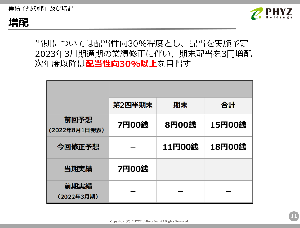 2023年3月期通期の業績修正に伴い、期末配当を3円増配いたします。