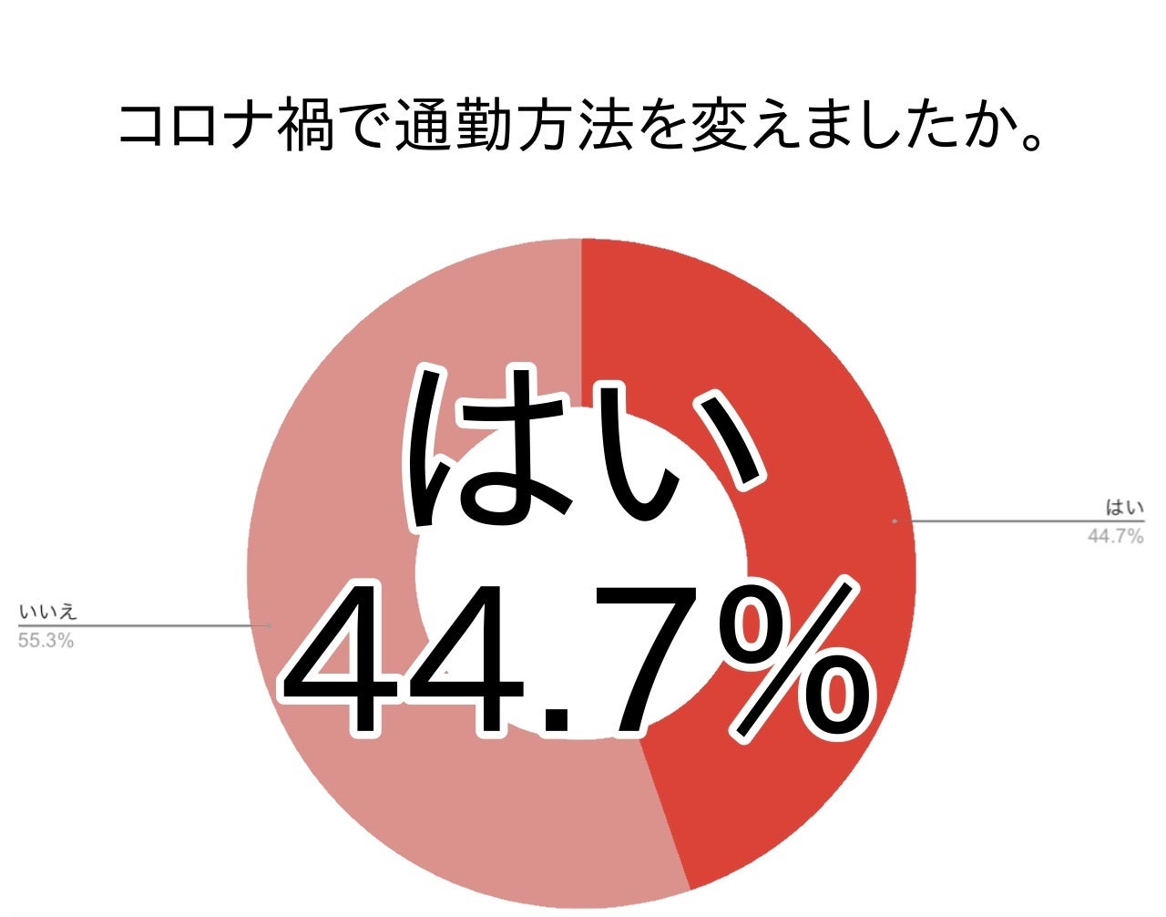 今回のアンケートでは44.7%の回答者がコロナ禍で通勤方法を変えたと答えました。