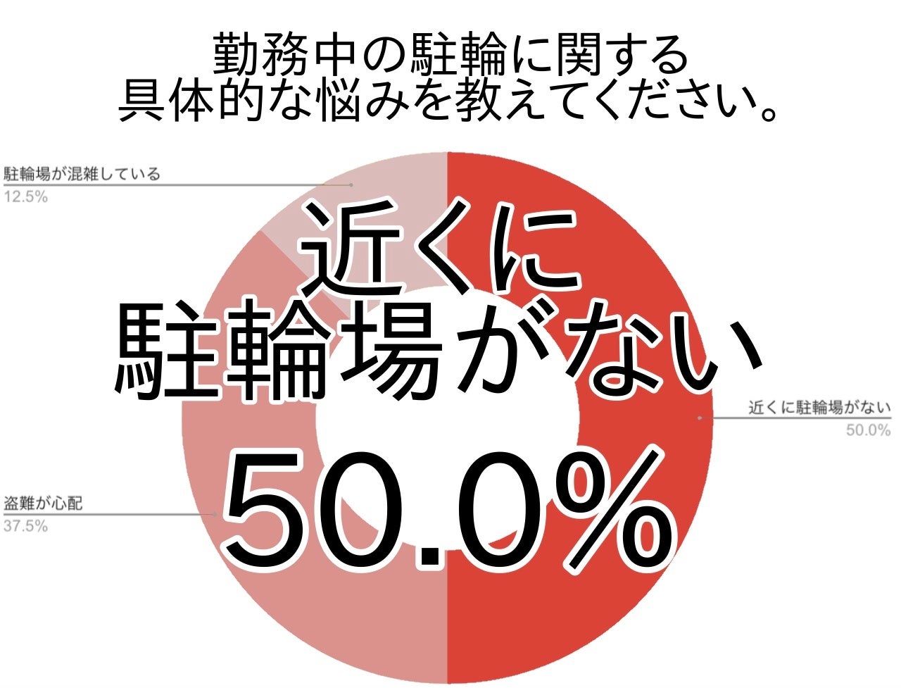 最も多かったのは「近くに駐輪場がない(50.0%)」という悩みで、半数の方がこの悩みを持っていました。