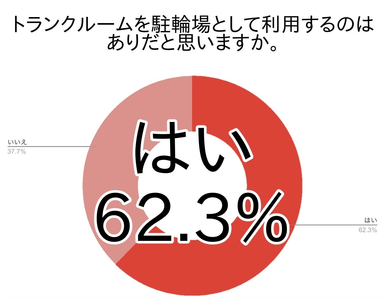 今回のアンケートでは62.3%の回答者がトランクルームを駐輪場として利用することを良い方法だと感じたことが分かりました。