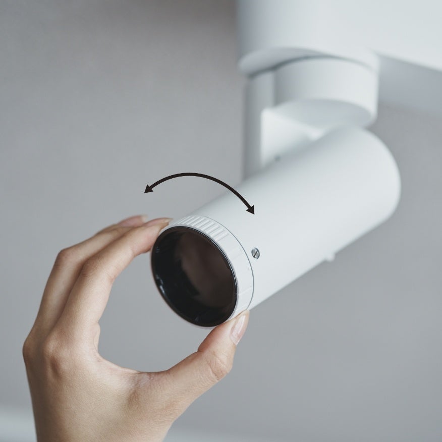 「SALIOT ムービングスポットライト」の新モデルは、住宅や小規模店舗、事務所など天井高が2.4~2.8mの空間での使用を想定しています。コンパクトサイズ、シンプルなデザイン、動作時の静音設計に加えて、美術館や博物館などで求められる高い演色性(Ra97)*を実現しています。インテリアや食事がきれいに見え、視作業にもおすすめできるあかりです。