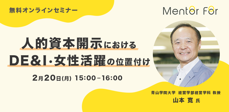 本セミナーでは、人的資本の情報開示が求められる背景やその意味、企業価値を向上させるために必要な客観的指標やKPIの設定の仕方などを、組織マネジメントがご専門の山本寛教授に解説いただきます。