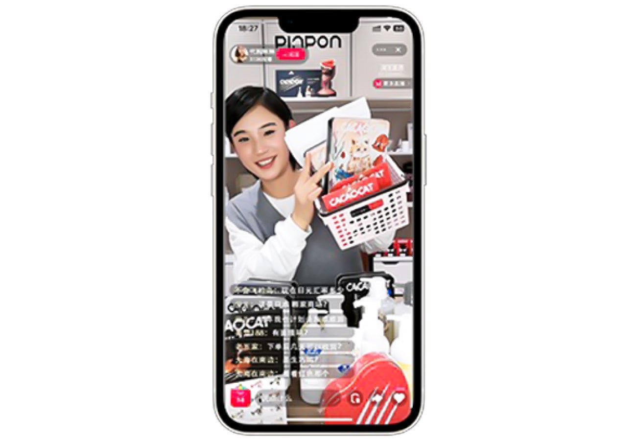 PinPon株式会社が展開している「PinPonStudio」は、ライブコマースの撮影・配信の場を備え、実際に店舗で商品を購入することが可能な「次世代ライブコマースとリアル店舗を融合した新形態小売店舗」です。店内の商品を、ライブコマース配信者又は来店客が様々なプラットフォームでライブ配信をすることで、視聴者側は配信側とのリアルタイムなやり取りを通して、文字情報だけでは分かりにくい商品情報を得てから購入することができます。