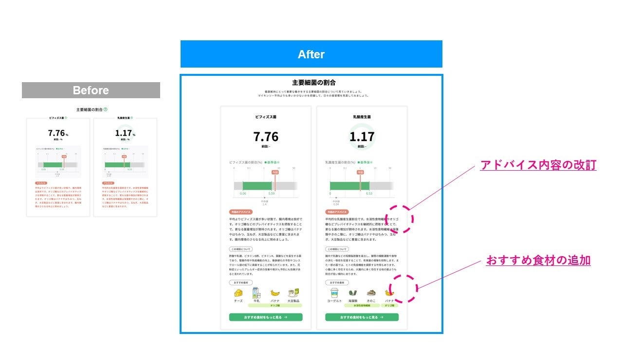 マイキンソーをご利用いただいた多くの方々に支えられ、サイキンソーの事業活動、および各研究分野の発展が支えられています。そこでサイキンソーは、「細菌叢で人々を健康に」というミッションの実現に向けて、より多くの方に腸内フローラ検査を通じた有益な情報を提供し、それによる行動変容を促すことで健康維持・増進をサポートするべく、検査結果をアップデートすることを決定いたしました。