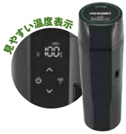 コンセントや車載用電源に接続した状態で蓄電池をセットすると、保冷・保温しながら蓄電池を充電することができます。当社従来製品より、充電時間を約1時間40分短縮しています。