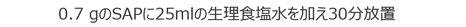 ・保水量: 吸水試験後、吸水したSAPを、遠心力150Gで90秒間脱水した後の保水量