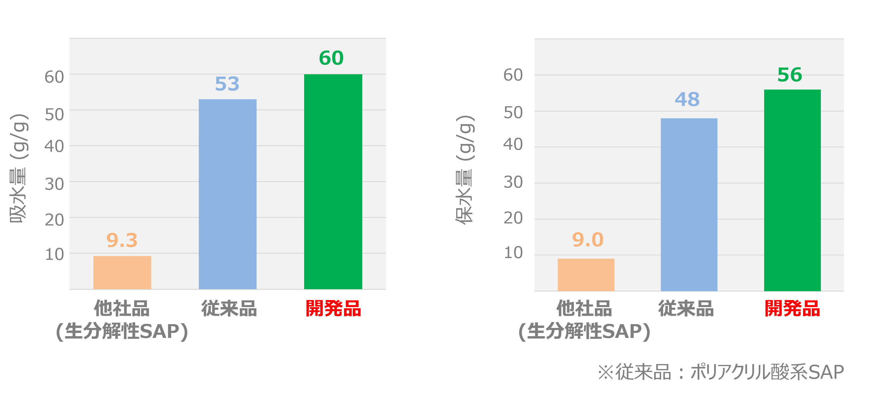 SAPは高い吸水性能を有する高分子材料で、紙おむつを中心にナプキンなどの衛生用品や、農業、緑化分野や化粧品など幅広い分野で使用されています。従来品はアクリル酸を主原料としたポリアクリル酸系のSAPが主流であり、石油由来かつ非生分解性であることから環境負荷が大きいという課題があります。これに対して、環境負荷の少ない天然由来かつ生分解性を有するSAPとして、天然高分子である澱粉やセルロースなどの多糖類を主原料としたSAPの研究開発が行われてきましたが、十分な吸水性能が得られず、最終製品としての活用は難しいとされていました。