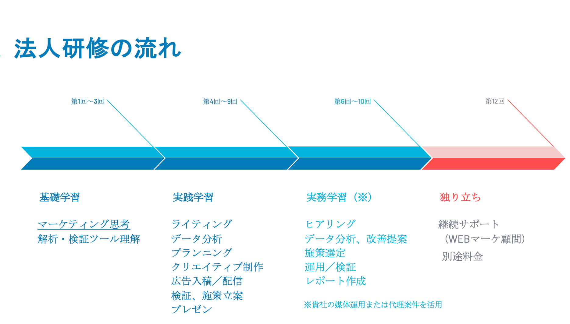 ■Webマーティング法人研修 カリキュラム(3ヶ月+サポート5ヶ月)