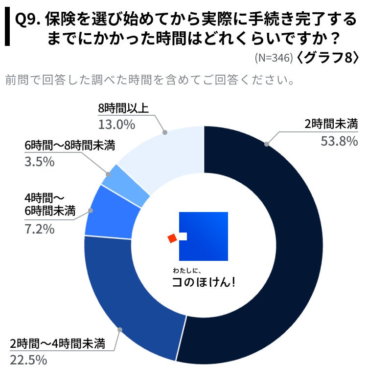 - 保険加入にかかる時間は「4時間未満」との回答が75%以上