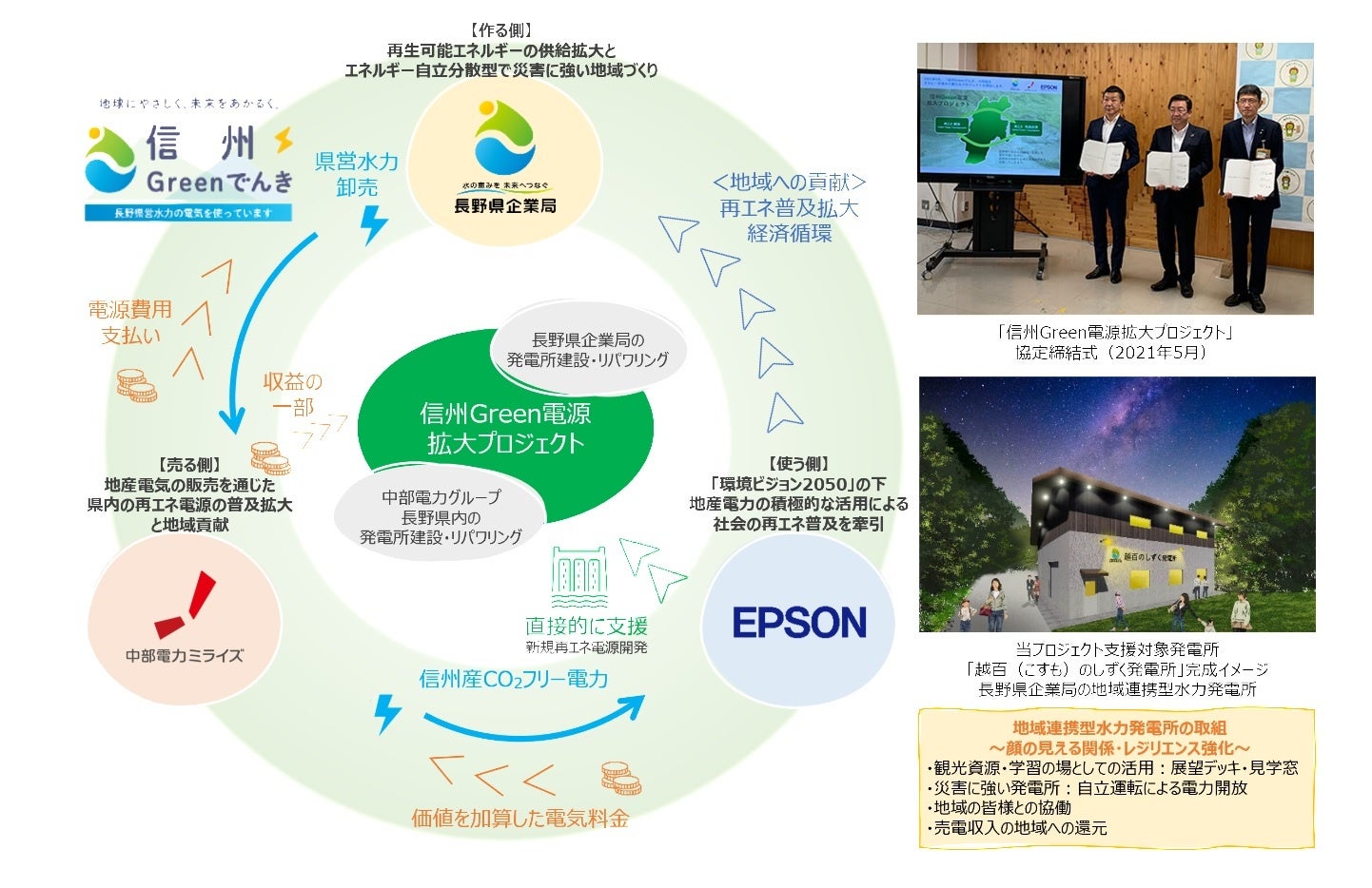 セイコーエプソン株式会社(以下 エプソン)と、長野県企業局(企業局長:須藤 俊一)、中部電力ミライズ株式会社(代表取締役:大谷 真哉、以下「中部電力ミライズ」)が取り組んでいる「信州Green電源拡大プロジェクト」が、一般財団法人新エネルギー財団主催 令和4年度新エネ大賞(経済産業省後援)の「新エネルギー財団会長賞」(地域共生部門)を受賞したことをお知らせします。