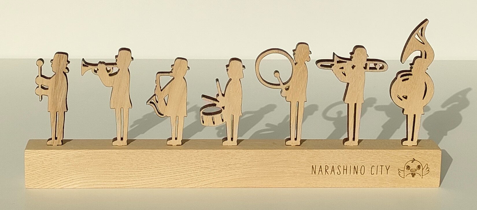 『音楽のまち習志野』をイメージしたマーチングバンドオーナメント(木の置物)