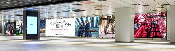 大阪モード学園ファッションデザイン学科高度専門士コース・ファッションデザイン学科・ファッション技術学科12グループの学生が創作した衣装着用モデル(ヘアメイクはヘア・メイクアーティスト学科の学生が担当)を、梅田の各スポットにて撮影し、梅田のアートシーンとして壁面にダイナミックに展開。学生のファッションコンセプトと各スポットの価値を組み合わせた「シーンコンセプト」と併せて表現します。
