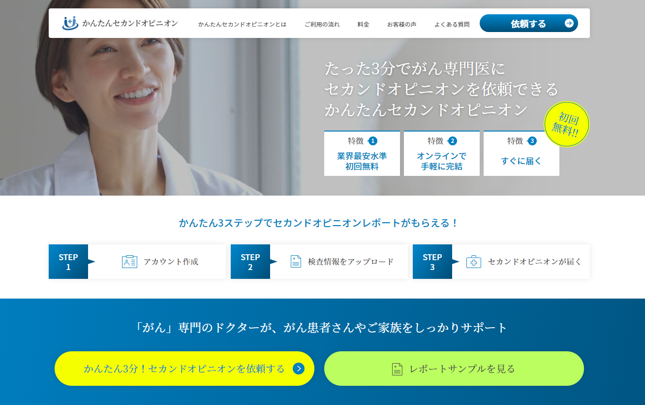 かんたんセカンドオピニオンは、がんの治療法に悩んでいる方にがん専門医からの意見をインタ ーネットでお届けするオンラインセカンドオピニオンサービスです。