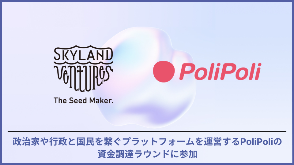 一般的に難易度が高いとされる政治・行政の領域に取り組むPoliPoliに期待していただき、大変光栄に思っています。Skyland Venturesさんとは、VCやスタートアップ企業にルールメイキングの文化を広げていくために、さまざま協力できることを楽しみにしております。お互いの強みを活かし合いながら、公益性のあるルールメイキングのあり方を模索していければ嬉しいです。