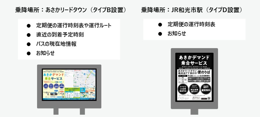 積水化学工業は2019年10月に朝霞市にある工場跡地を活用した複合大規模タウン「あさかリードタウン」をオープンし、最寄り駅の1つである「JR和光市駅」までの交通手段としてシャトルバスの試験運用を開始。お客様が利用しやすい停留所を目指し、JR和光市駅、あさかリードタウン、2カ所に、スマートバス停を設置されました。