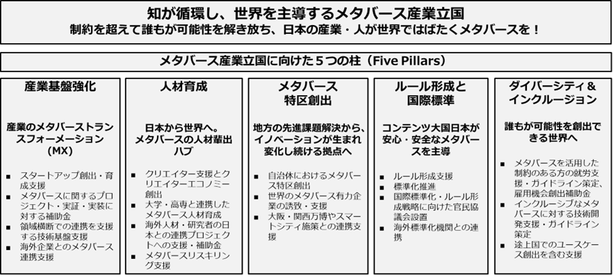 「知が循環し、世界を主導するメタバース産業立国 ~制約を超えて誰もが可能性を解き放ち、日本の産業・人が世界ではばたくメタバースを!~」