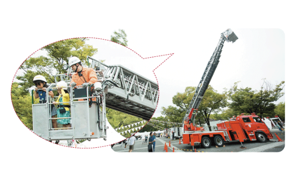 消防車両展示やミニ防火衣体験を実施します。憧れの制服を着てみませんか?