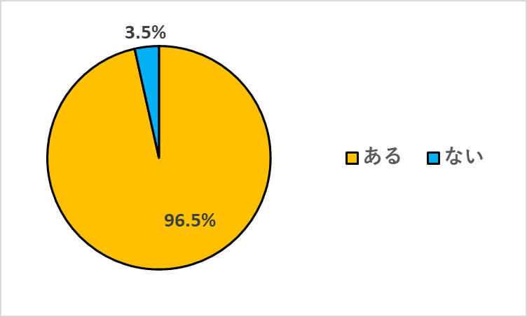 アンケート結果によると、受験をしたことがある人は96.5%と、9割以上の人が受験の経験があることが分かりました。