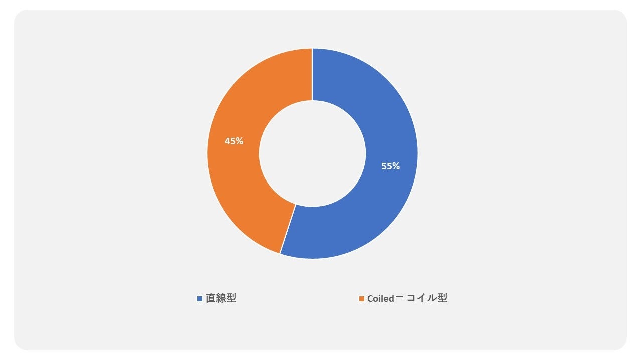 形状により、直線型とコイル型に分類さ れます。直線型とコイル型はどちらもほとんど同じ需要を持っています。