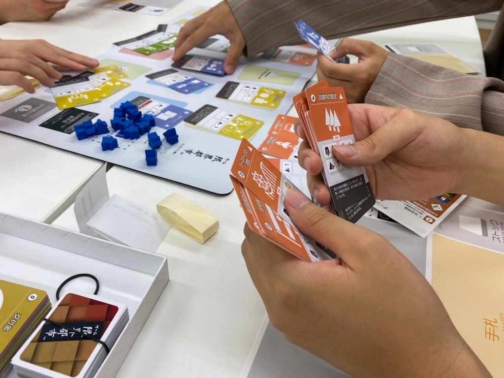「ゲーム限界都市」には、カードゲーム好きな学生が開発に関わっています。そこに加えて、合併協議や総合計画に携わった元行政マンである副代表と、政策コミュニケーションや住民による政策評価を研究する代表が連携し、3年の歳月をかけて開発しました。