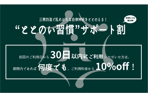 今後もROKU SAUNAをご愛顧いただいている皆様に感謝の気持ちを伝え、お客様の更なる健康と向き合う上で、ご好評をいただいた第1弾に続いて「”ととのい習慣”サポート割」の第2弾を実施いたします。