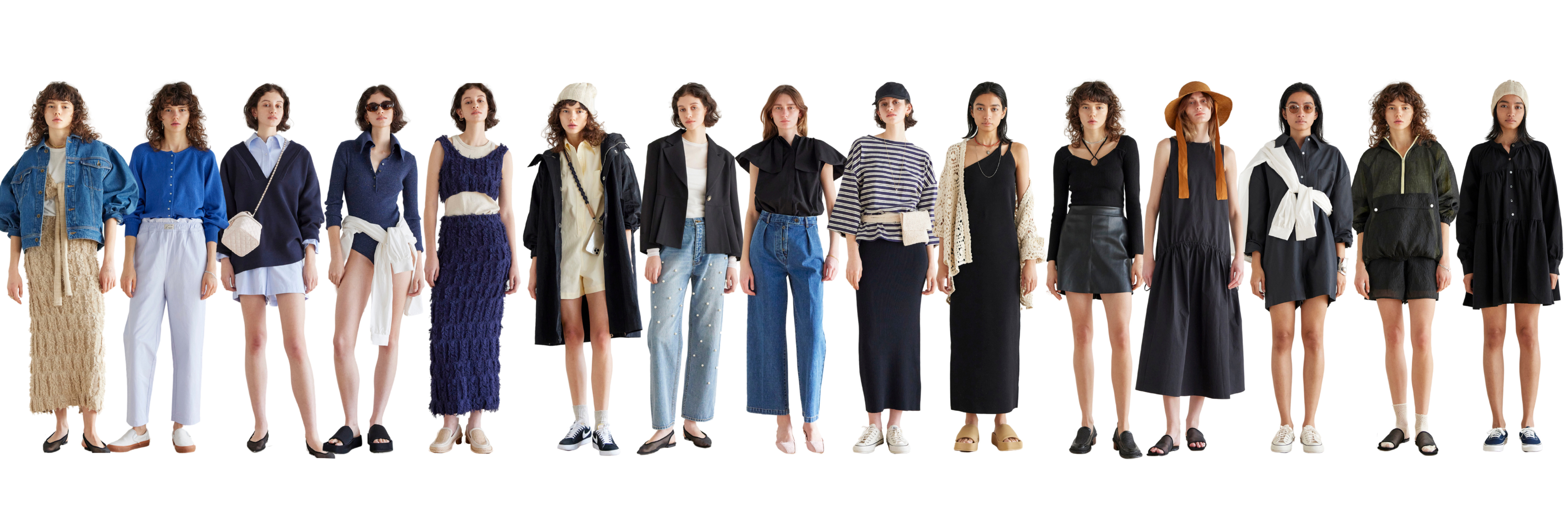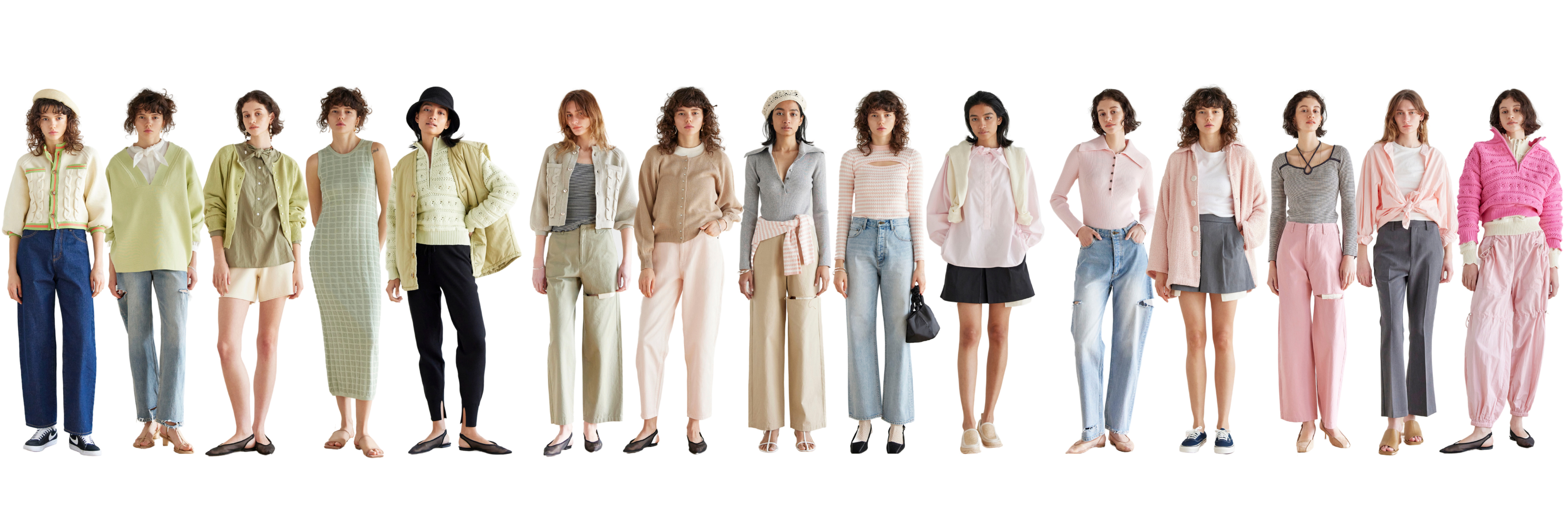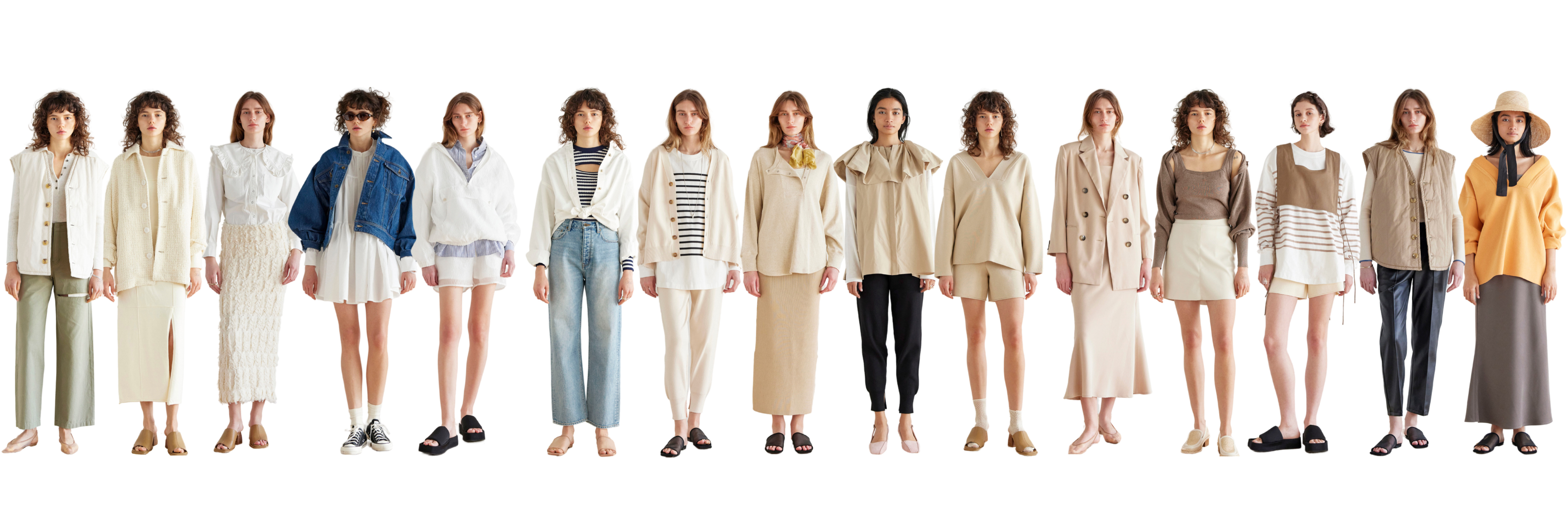 ベーシックの可能性・自由さ・個性の主張・ブランドの原点回帰をテーマに、程よいトレンド感、枠のない自由さを着用者に感じてもらいたい。 と、素材、またはデザインのどちらかで遊びを入れ、アイテム1つ1つに合わせたカラー選びを行ったコレクション。