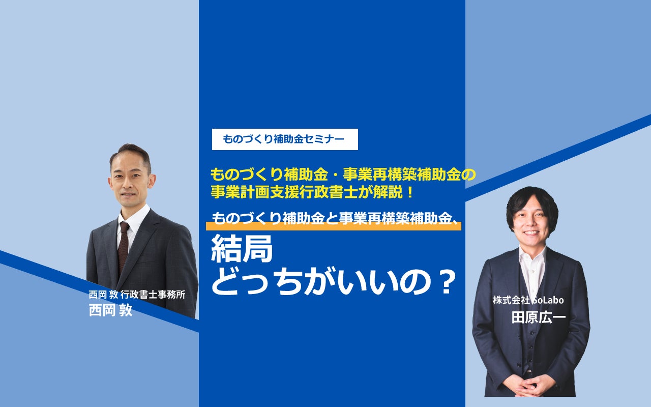 セミナータイトル:ものづくり補助金と事業再構築補助金、結局どっちがいいの? 補助金活用ノウハウ