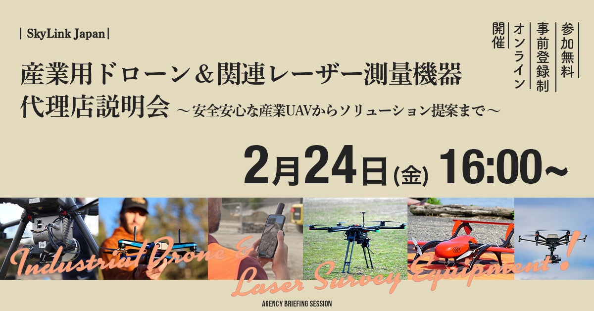 今回の代理店説明会では、それら最新の取扱い産業用UAVや関連レーザー測量機器の他、当社で提供するサービスやその事例などを詳しく解説し、差別化された商材による売上拡大を検討される法人販売パートナー様を広く募集いたします。