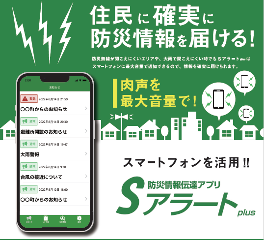 住民に自治体独自のアプリを入れていただく事で、緊急モードで配信した内容が戸別受信機同様、強制的に最大 音量で自動再生されるシステムです。