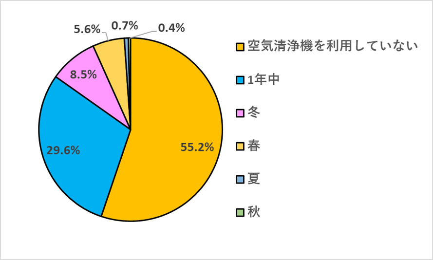 - 空気清浄機を利用する時期は、「1年中」が最多