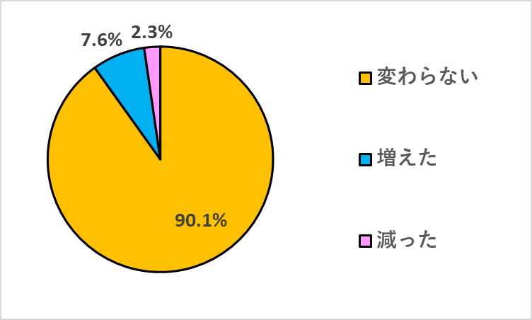 「新型コロナウイルス感染拡大前と比較して空気清浄機の台数は増えましたか?」という質問については、「変わらない」が最も多く90.1%、次いで「増えた」が7.6%、「減った」が2.3%という結果になりました。