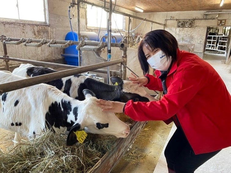 当社では、2019年より、作業着を納品している畜産農家からの要望を受け、仔牛用の防寒グッズを独自に開発・販売するプロジェクト「USIMO」を立ち上げています。これまで、電熱線入りネックウォーマー、マフラー、点滴保温器、防寒コートを相次いで開発。また毎シーズン改良を重ねるなど、創意工夫を繰り返しています。