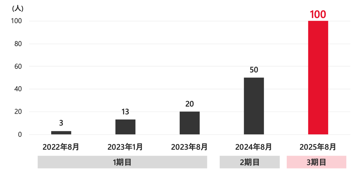 Ballistaは、設立当初(2022年8月)から半年経たずして約5倍までメンバーの増員を実現しました。3期目には100名まで組織を拡大させることを目指します。