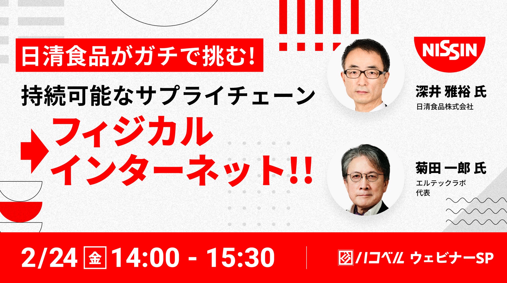 物流プラットフォーム「ハコベル」を展開するハコベル株式会社(本社:東京都品川区、代表取締役社長CEO:狭間 健志、以下:ハコベル)は2月24日(金)に、日清食品株式会社 深井 雅裕氏、 L-Tech Lab 菊田 一郎氏の両名をお迎えし「<日清食品がガチで挑む!>持続可能なサプライチェーン⇒フィジカルインターネット!!」を開催することをお知らせいたします。