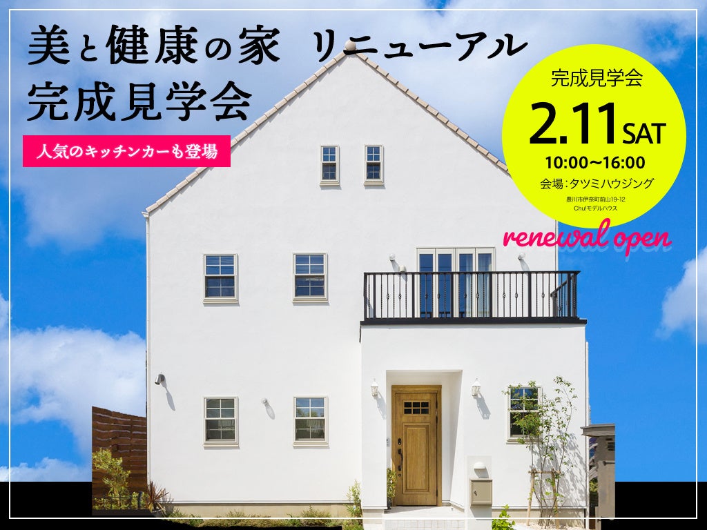 家事ラクな間取りが人気のChu!モデルハウス。今回間取りはそのままに、自然素材「無垢」と「漆喰」のスタイルを取り入れ、美と健康をテーマに、性能やグリーンインテリアなど快適性や癒しを感じられる空間をご提案いたします。