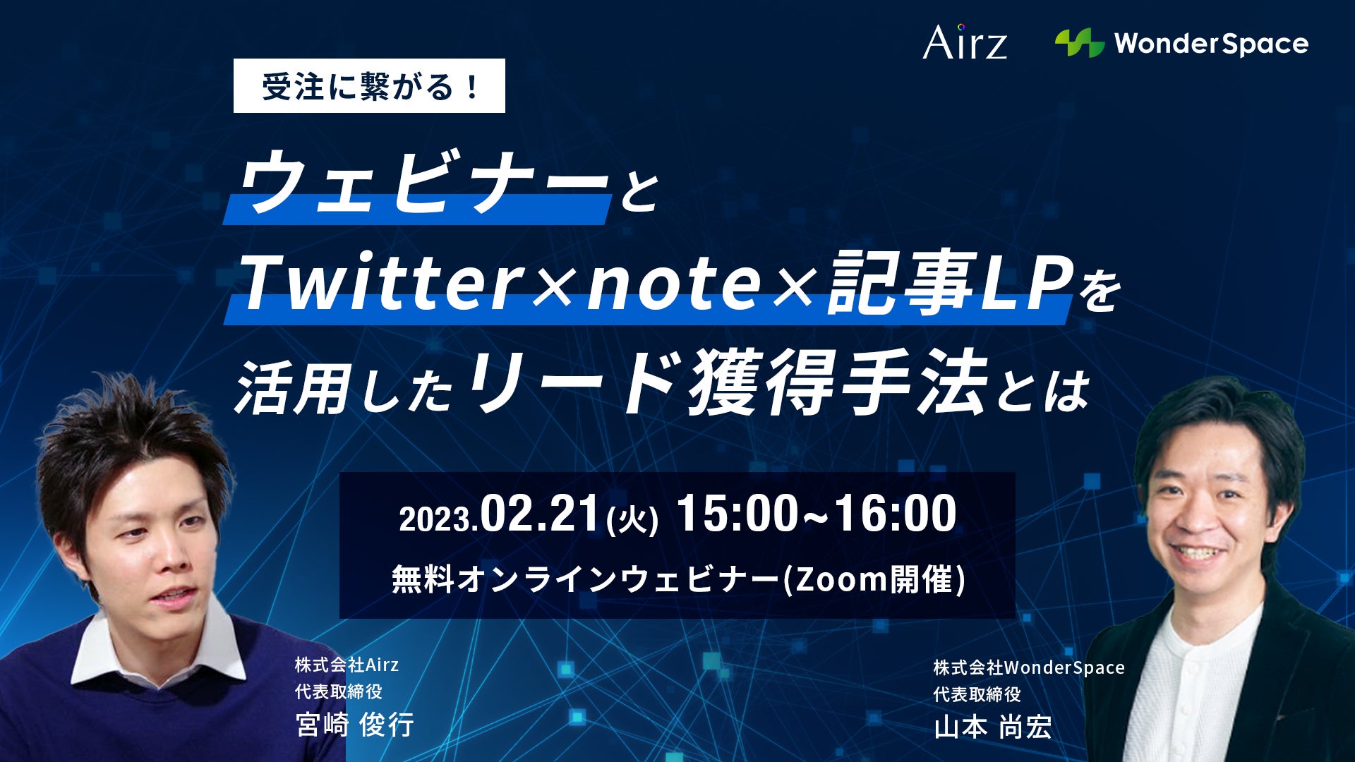 そこで、今回は株式会社Airz様と「ウェビナーとTwitter×note×記事LPを活用したリード獲得手法」をテーマにウェビナーを開催する運びとなりました。