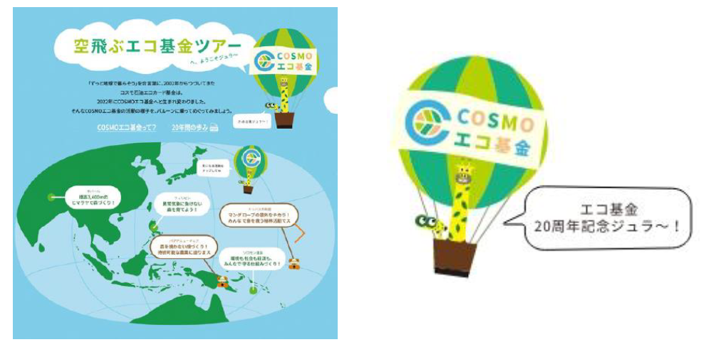環境活動を楽しめるWEBサイト「COSMO ecolozoo」において、COSMOエコ基金20周年記念サイト、「空飛ぶエコ基金ツアー」を公開しました。
