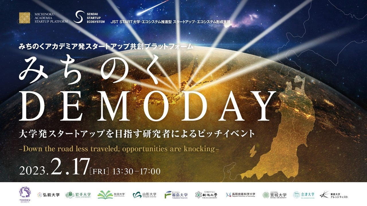 - 大学発スタートアップを目指す研究者によるピッチイベント「みちのくDEMODAY」開催!