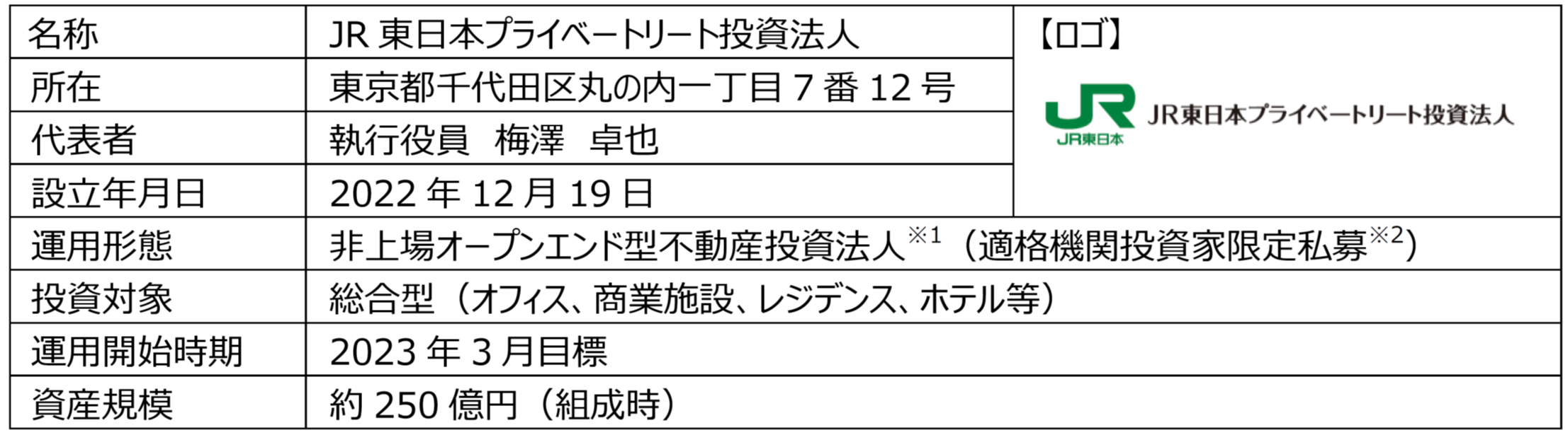 このたび、2022年12月に「JR東日本プライベートリート投資法人」を設立し、2023年3月より運用を開始することによって、今後も回転型ビジネスを継続的に実施し、不動産ファンド事業をさらに拡大するとともに、JR東日本グループにおける「変革2027」のスピードアップを図ります。