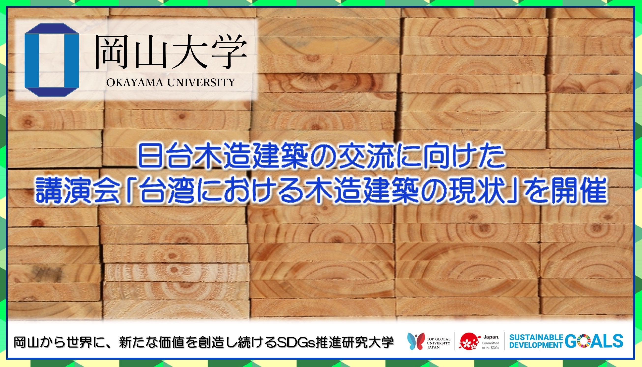 国立大学法人岡山大学(本部:岡山市北区、学長:槇野博史)のグリーンイノベーションセンターは2023年2月1日、日台木造建築の交流に向けた講演会「台湾における木造建築の現状」を本学津島キャンパスにある共育共創コモンズ(OUX)で開催しました。