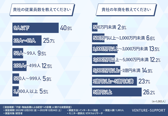 - 業種・従業員数・年商(今回の調査対象者の内訳)
