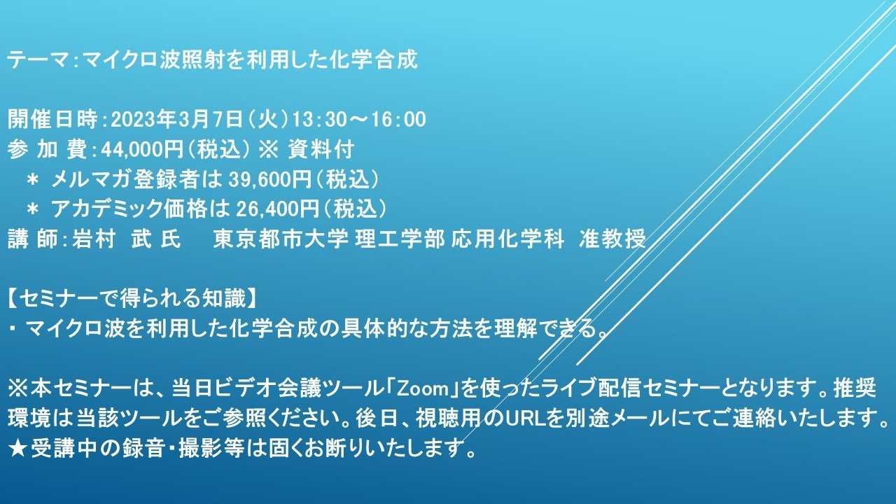 ・ マイクロ波を利用した化学合成の具体的な方法を理解できる。