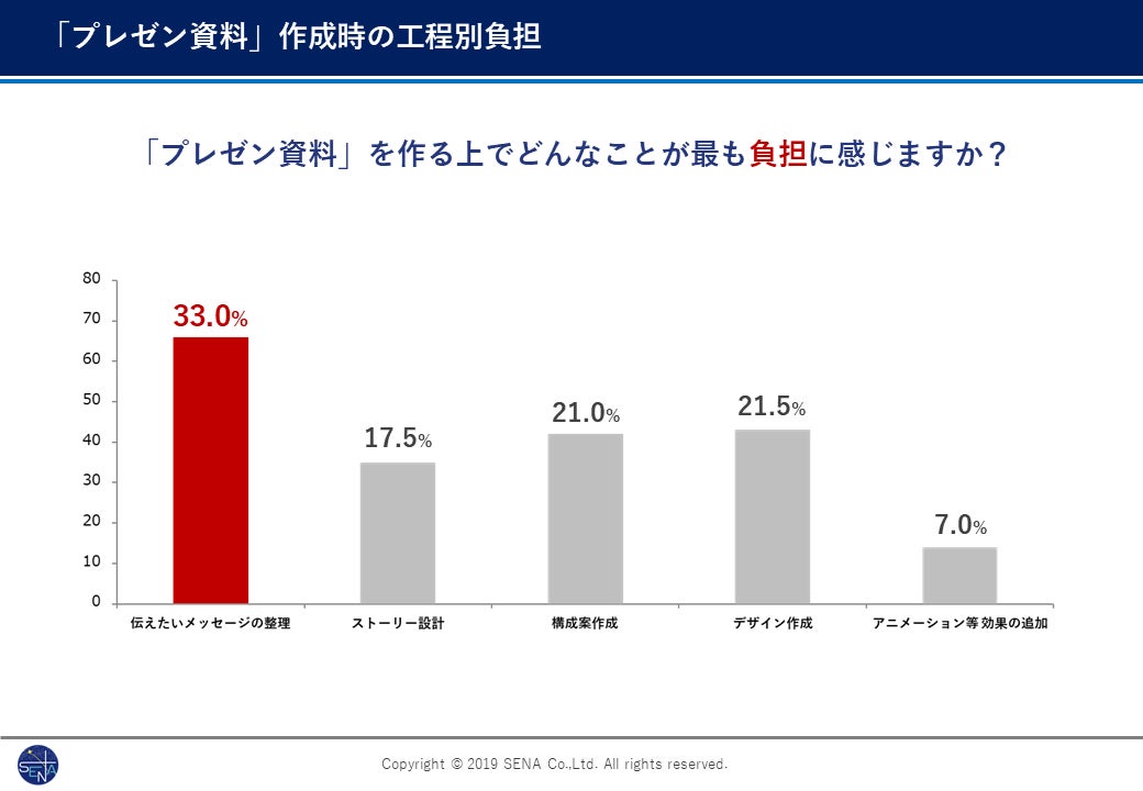 ・「プレゼン資料」を作る上で最も負担に感じる作業は、伝えたいメッセージの整理