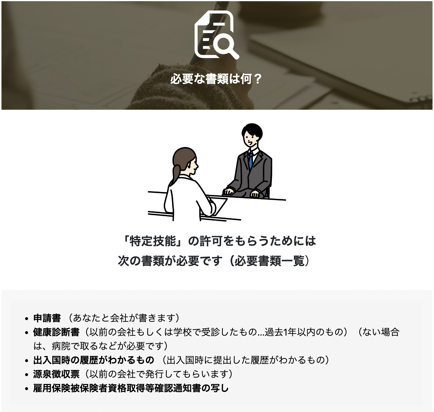 特定技能に関する基礎知識や試験情報をわかりやすくまとめています。