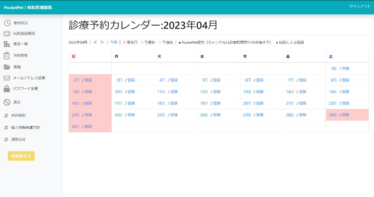 患者さまからの予約をウェブ上で受け付けることができます。また、ペットクリニック側ではペットの種類や診察内容の希望が確認できます。