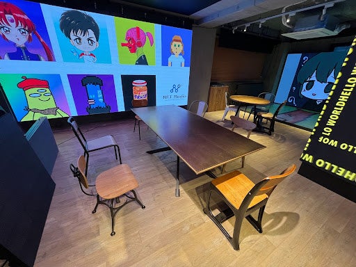 NFT Media Studioは、東京都渋谷区千駄ヶ谷に位置するLEDビジョンや液晶ディスプレイを壁面、床、天井と全方位に設置し、インタラクティブなNFTコンテンツの表現が可能なサイバースペースです。NFTMedia主催イベントをはじめ、NFTプロジェクトタイアップイベントなども積極的に開催いたします。