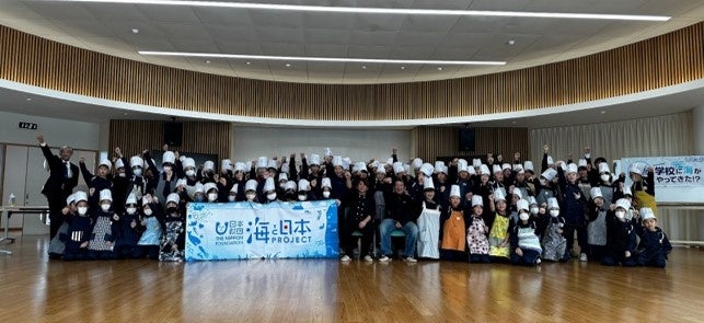 2月1日(水)は児童たちにとって最後の授業でした。みんなでコック帽に思い思いの気持ちを書き、授業に参加しました。この「いのちを頂く授業」では、以前特別授業で講師を勤めた漁師の浜多虎志さんと、料理人の濱多雄太さんが約半年間にわたり一緒に陸上養殖をしたヒラメを調理しました。漁師の浜多さんとともにヒラメを捌き、濱多さんが作ったヒラメの出汁入りスープを使います。各グループに分かれ、野菜を添えたリゾットを一生懸命仕上げました。そして最後は、命に感謝し「いただきます。」児童たちは、自分たちで一から調理したリゾットを食べ、「美味しくできた!」と沢山おかわりをして、完食しました。講師の二人からは「これからも、命を頂くとき感謝を忘れずに美味しくいただいてください」と改めて命を頂くことへの感謝の気持ちを伝えました。