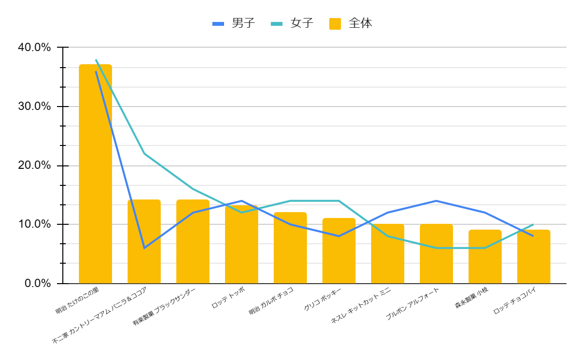 次に、「好きなチョコレート菓子」についての調査結果です。