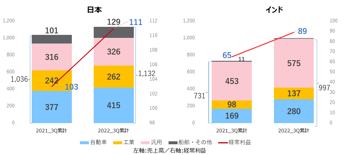 ・インドは自動車を軸に収益拡大。通期計画値に対して、順調に推移。